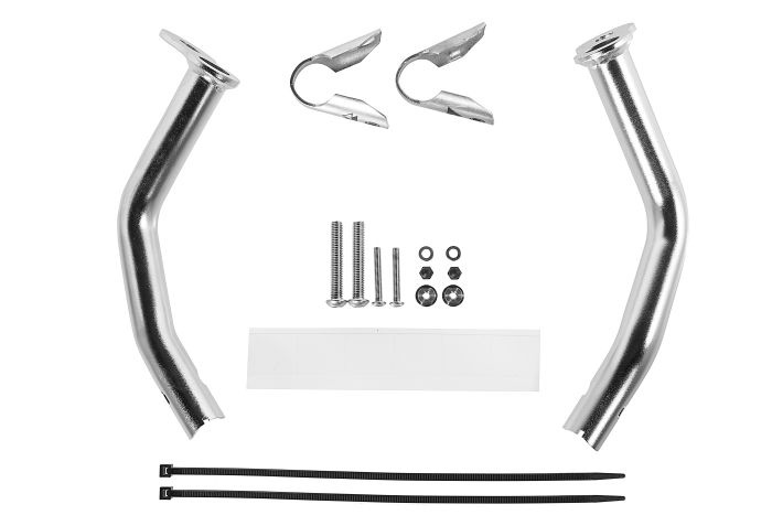 Er entspricht in Design und Optik den BMW Motorradhaltern der GS, da sie den gleichen Durchmesser und eine elektropolierte Oberfläche haben.