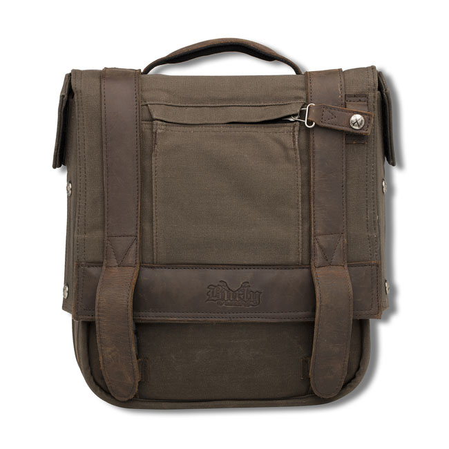 Kräftige Satteltasche. Nass gewachstes, UV-behandeltes Baumwoll-Canvas-Material aus dunkler Eiche. Mit Lederverkleidung für Unterstützung, die nach einiger Zeit altert und Charakter zeigt. Robuster, mit Metall und Polyethylen verstärkter Innenrahmen, um die Tasche in Form zu halten, leer oder voll. Mit speziellem Rolltop-Verschluss und dem Snap/Velcro Road Shield-System, um Wind und Elemente draußen zu halten. Mit hochwertigen "moto centric" Schnellschnallen und Reißverschlüssen. Das Quick-Release-Pin-Lock-Halterungssystem ermöglicht ein einfaches und schnelles Entfernen der Satteltasche. Hinweis: Satteltaschen werden einzeln verkauft.