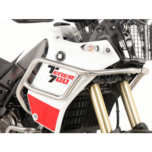 La parte superior de la motocicleta, en particular el depósito y el carenado, está eficazmente protegida por la barra de protección del depósito. Las cubiertas laterales del motor están eficazmente protegidas por la barra de protección del motor. Con el protector de motor 60357SW y el protector de motor "pequeño" original del Ténéré en la versión básica, ambos soportes pueden combinarse y montarse. Apropiado para todas las Ténéré 700.