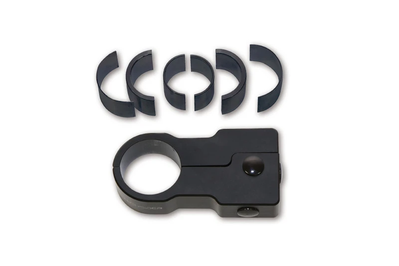 Adatto a tubi di diametro 20 mm, 22 mm, 27 mm e 28 mm. Il supporto può essere adattato facilmente e rapidamente ai diametri sopra specificati utilizzando gli inserti inclusi.