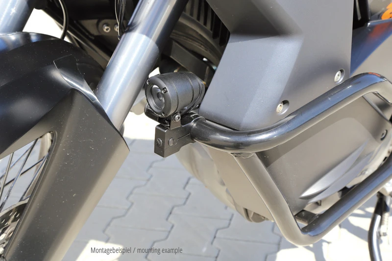 Fissato al manubrio, può essere utilizzato per sostenere strumenti, navigatori satellitari o supporti per telefoni cellulari. Con un montaggio sulla barra di protezione, fari supplementari