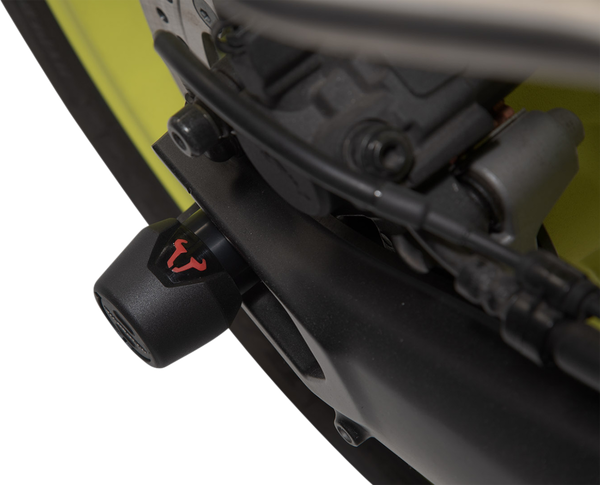 • I crash pad in plastica resistente all'abrasione offrono una protezione aggiuntiva per il forcellone.